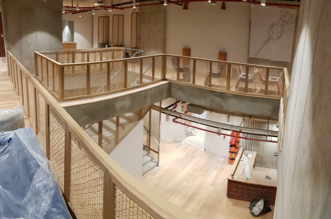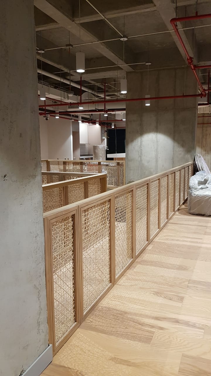 Tejimos más de 200m2 en mimbre para Wework Barranquilla y más de 50m2 para el Wework Bogotá de la Cll 100.