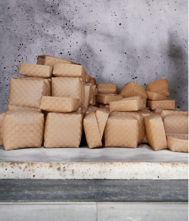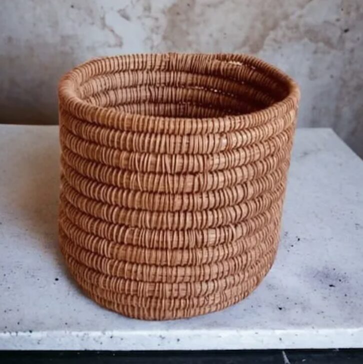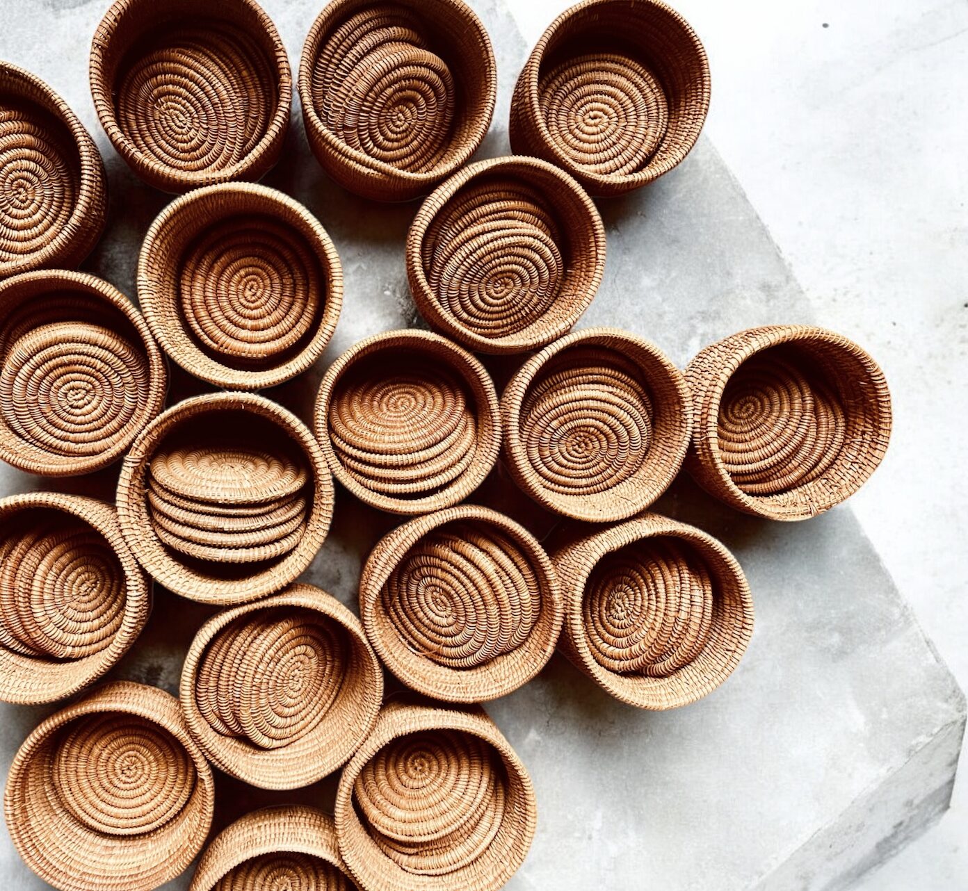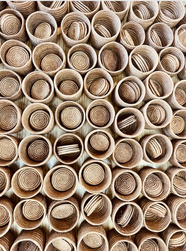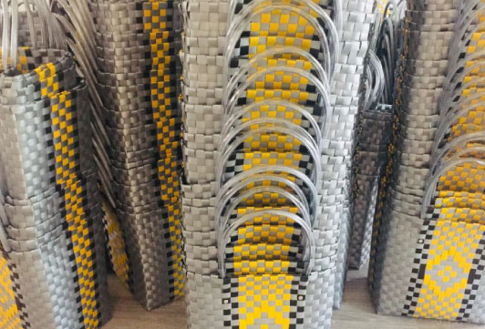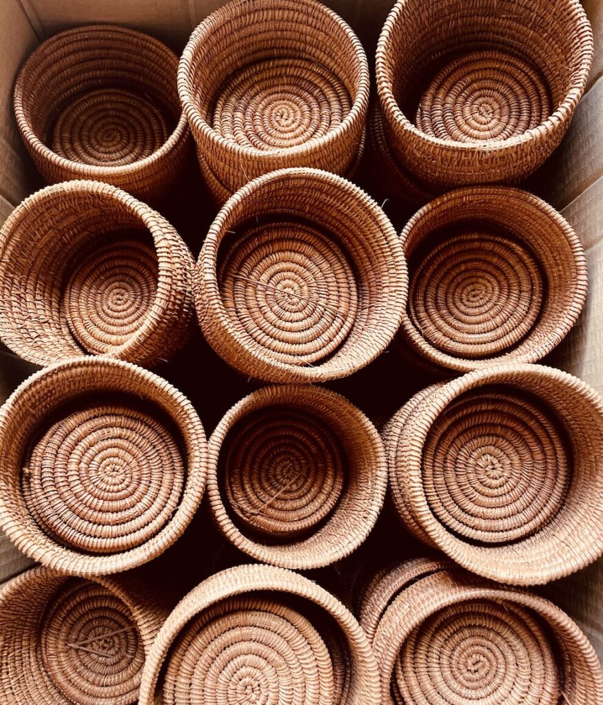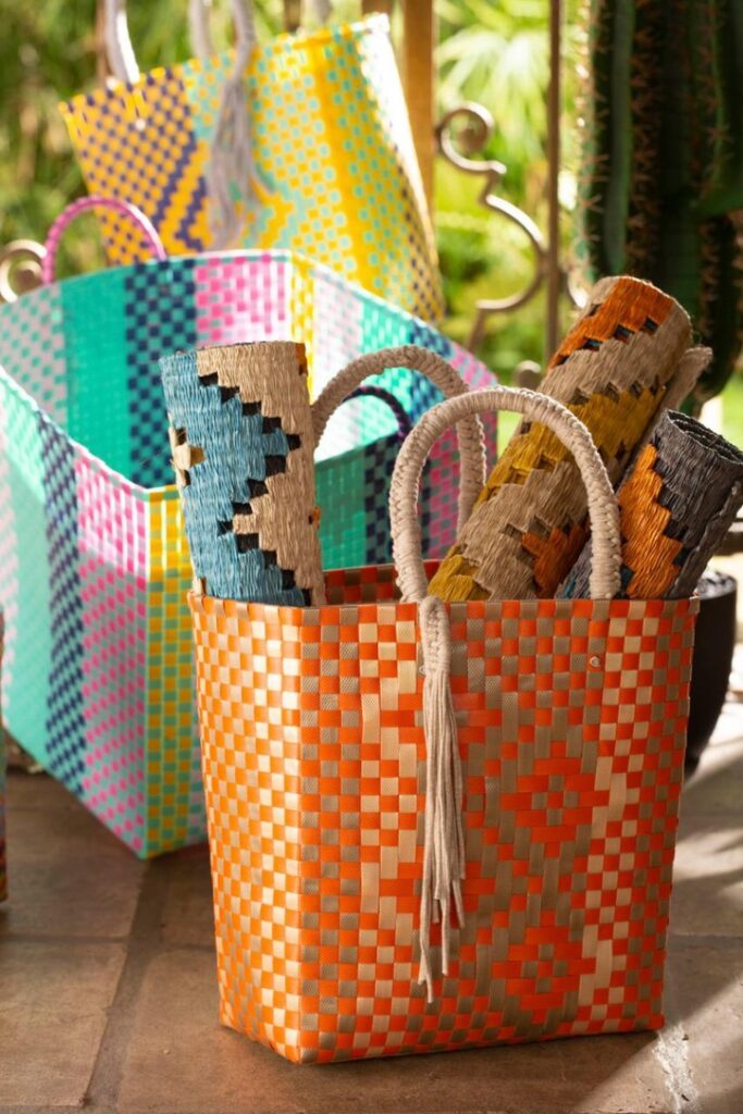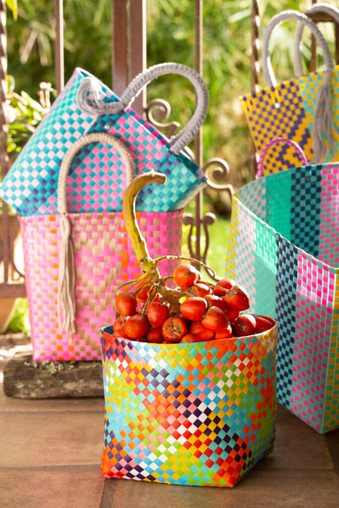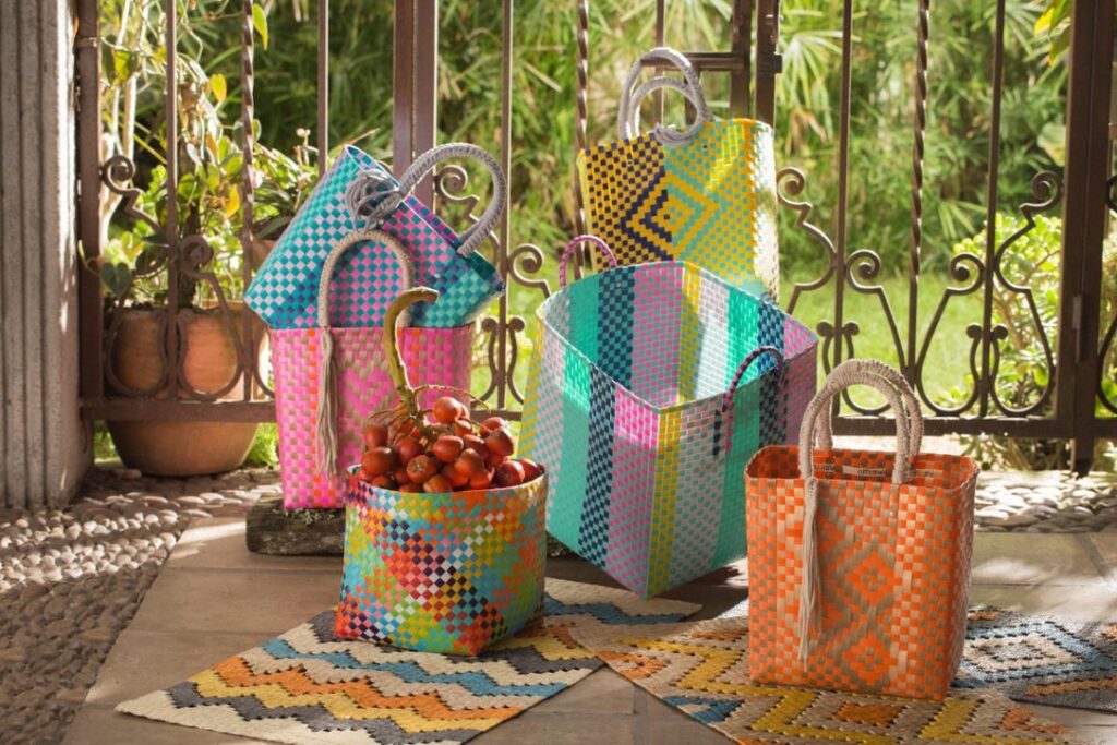 Diseñamos y desarrollamos una colección de canastos tejidos en zuncho plástico reciclado para Diego Guarnizo en alianza con el Éxito.