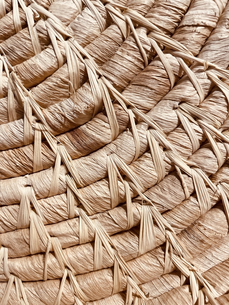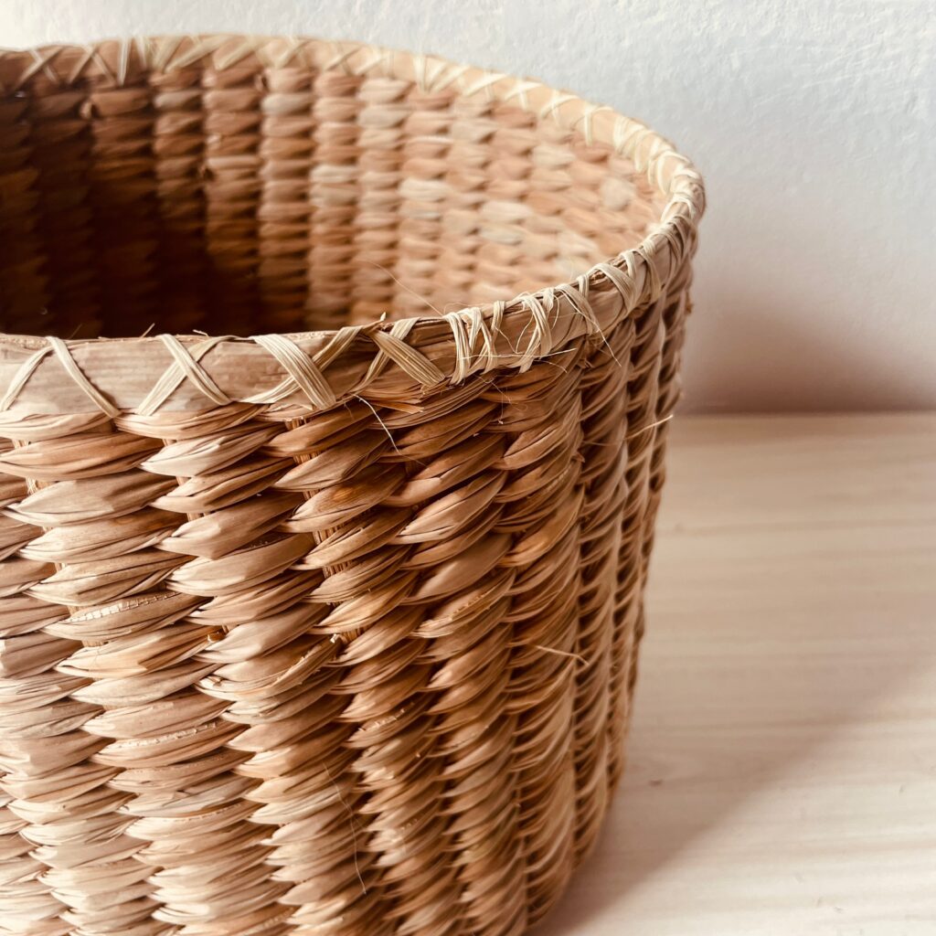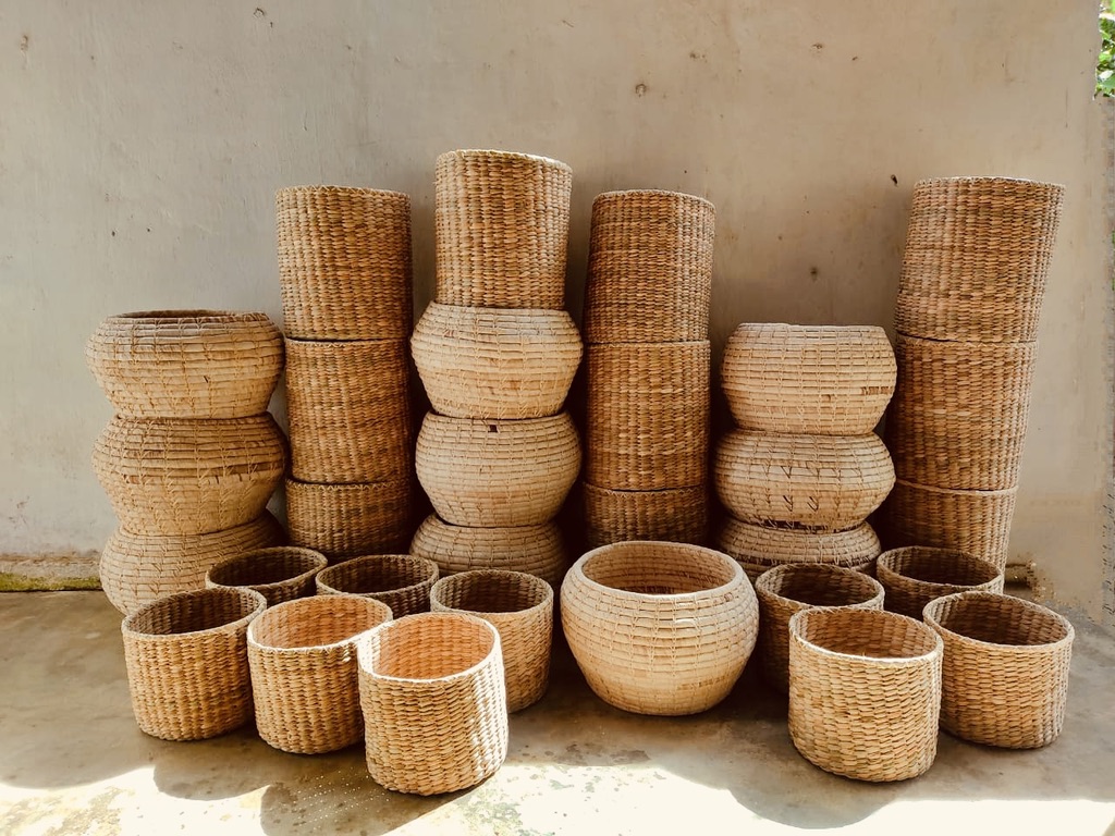 Canastos para base de floreros tejidos en paja tetera, calceta de plátano, fibra de chiqui-chiqui y enea por grupos de artesanos alrededor del país.
