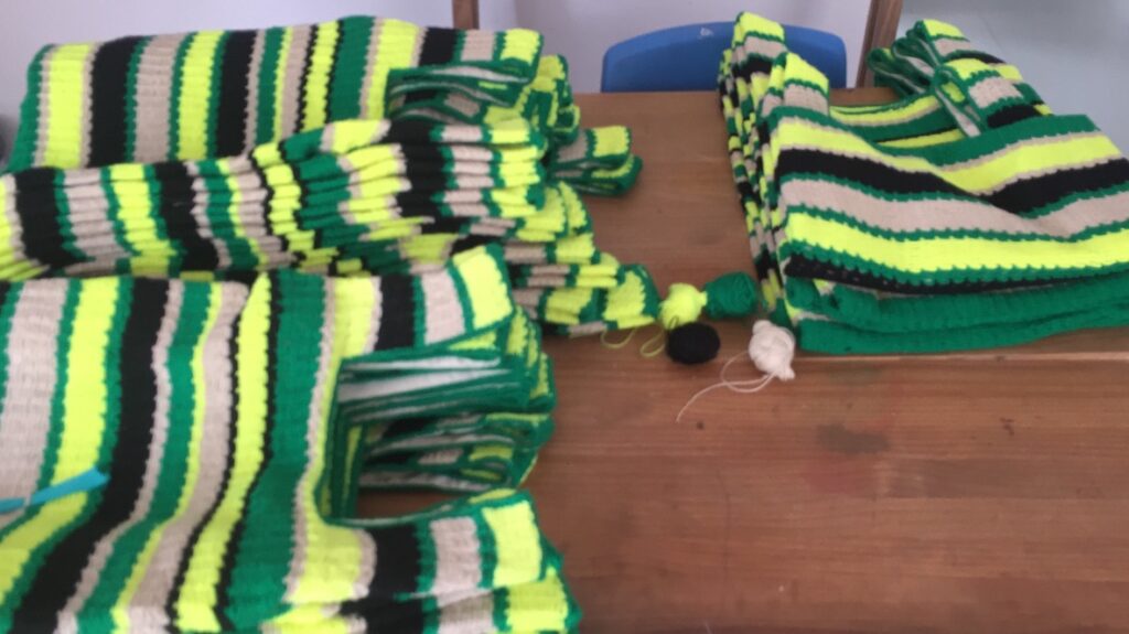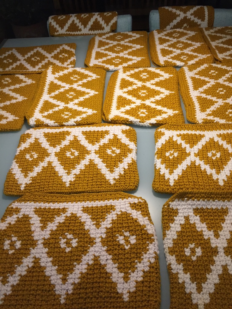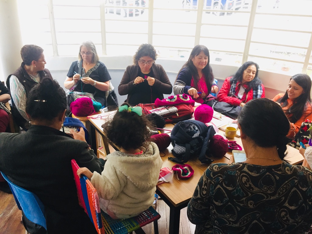 Capacitamos artesanas tejedoras para producir mochilas tejidas en lana e hilos para proyecto de exportación de marca extranjera.