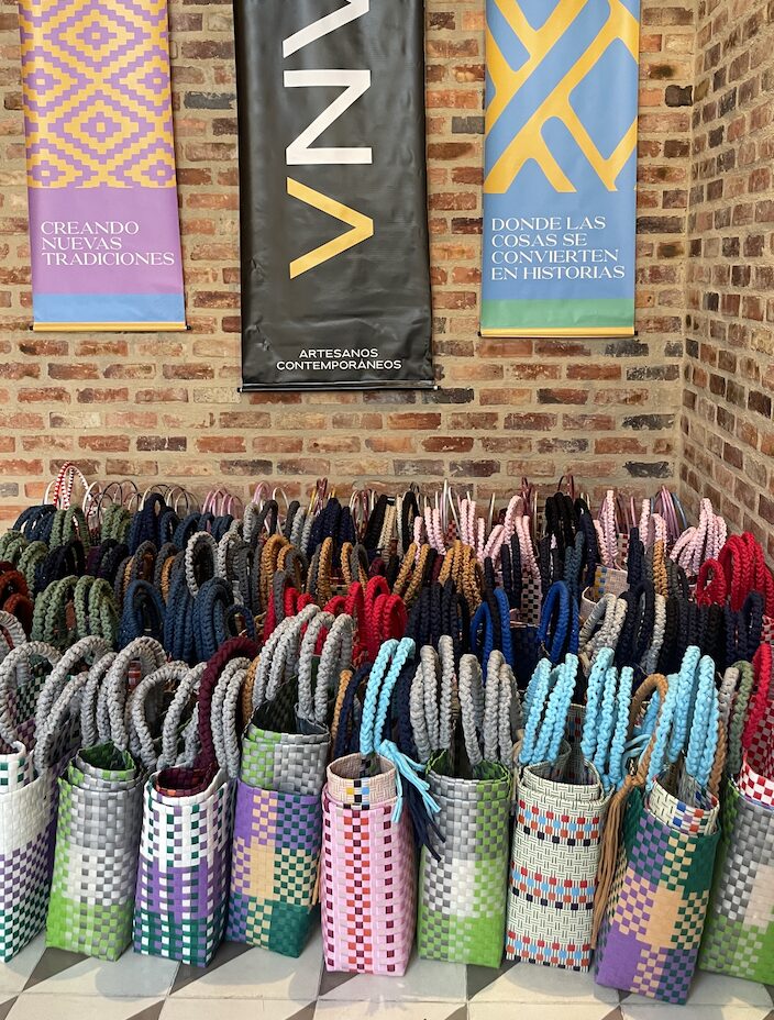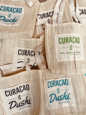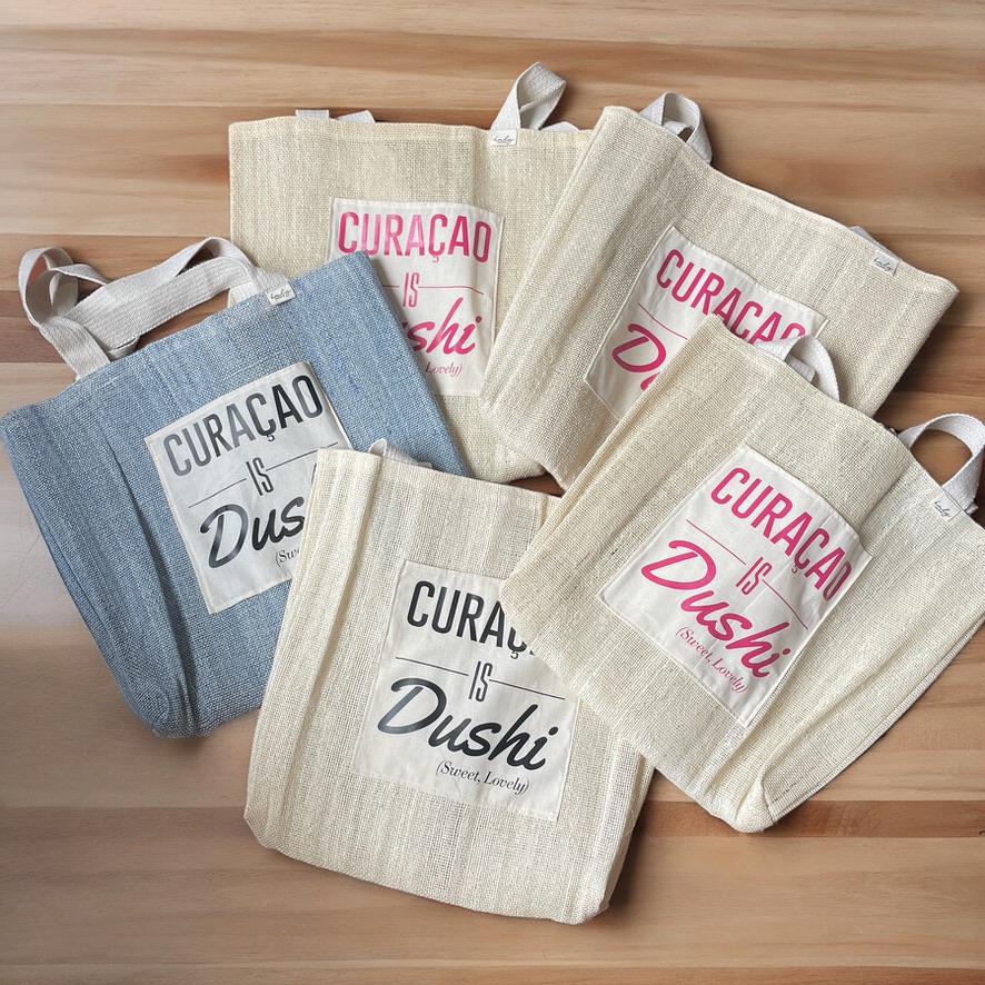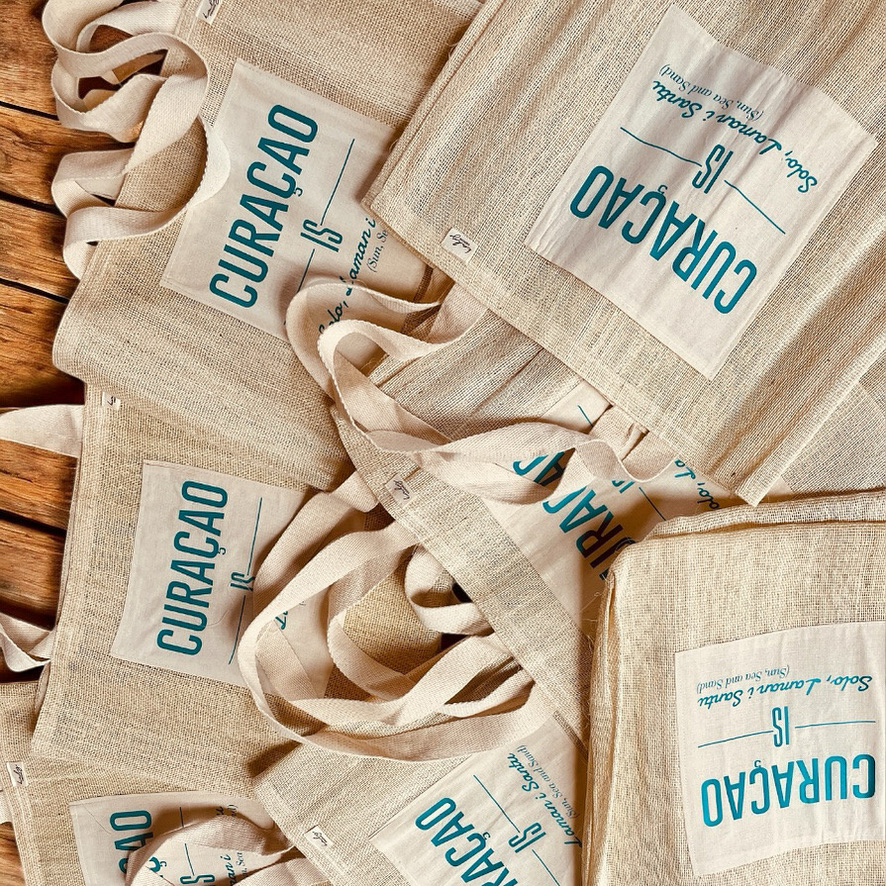 Desarrollo de bolsas tejidas en fique y estampadas para marca en Curazao.