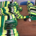 A medida que estas mujeres talentosas entregaban los tejidos, otro grupo de mujeres trabajaba para coser lo forros y etiquetas y luego ensamblar las manijas tejidas en cinta plástica de manera artesanal y 100% a Mano.